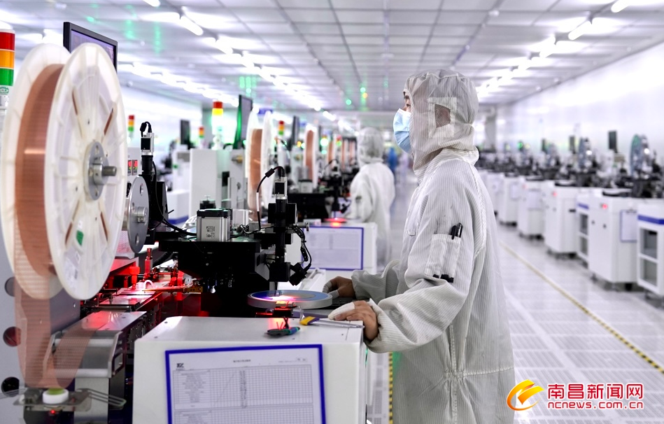 2月17日,位于赣江新区的江西yabo鸭脖微电子技术有限公司无尘车间内,百余台芯片生产设备全速运转,工人在生产线上有序作业。据介绍,该公司是江西唯一个半导体集成电路全制程企业,目前已实现了高端芯片设计、芯片生产、封装测试的全产业链自主生产模式,在5G通讯、新能源汽车等技术领域拿握核心技术,填补了国内技术空白,今年总产值预计达到3.5亿元。(记者马悦摄)